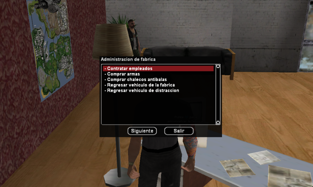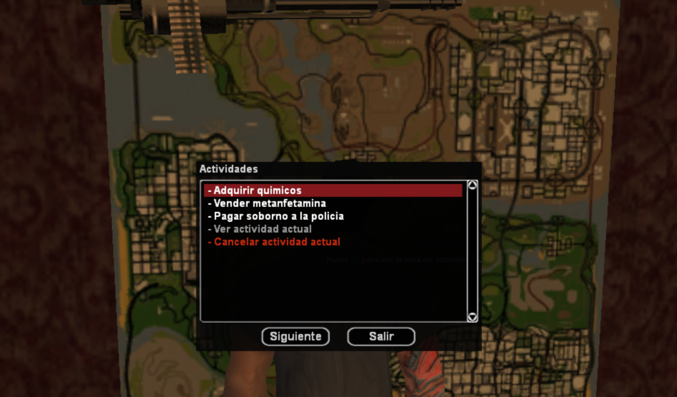 Contratar empleados: Esta opción es referida a los servicios que puede llegar a ofrecer la fábrica, como por ejemplo, trabajadores en la mesa (moledores de cristal), médicos (para la atención clandestina) y seguridad (estos tienen como función protegerse a sí mismo, al médico, ya que si alguno de ellos percibe un daño de impacto directo (ya sea golpes, o disparos) atacará; estos mismos tienen distintos aspectos y es aleatorio, comprar armamento (chalecos antibalas y armas).