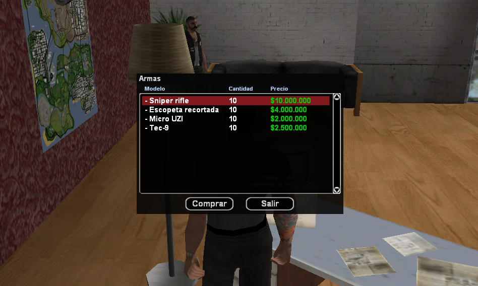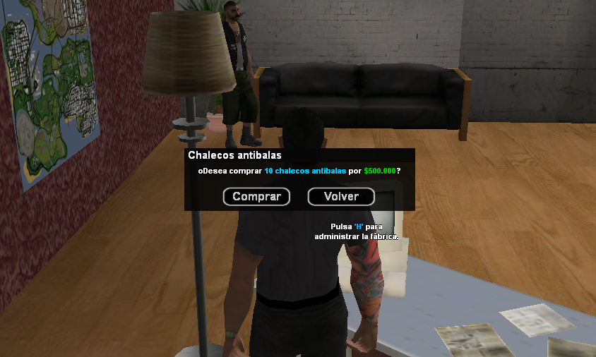 Si lo que queres es obtener armamento en tu fábrica, lo que tenes que hacer es ir al centro de control anteriormente nombrado, seleccionar en este mismo “comprar armas/comprar chalecos antibalas” y te saldrá la lista de precios por X cantidad de recursos que deseas adquirir.
